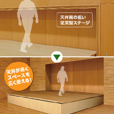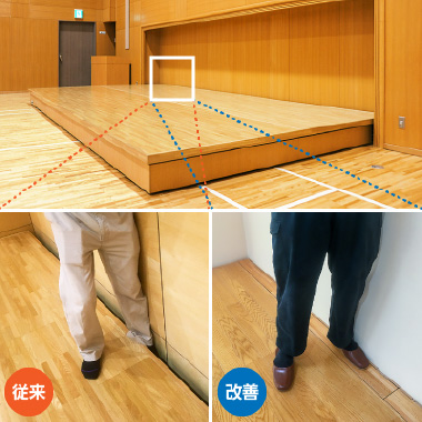 ステージ奥の隙間も「しっかり塞ぎます!」ニチブの可動ステージの特徴ニチブの可動式・収納式ステージは使いたいときにだけ使えて場所も取りません。